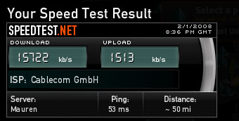 Diese Erhöhung hat Cablecom am 06. Dezember 2007 in einer Medienmitteilung angekündigt. Statt im März wurde die Geschwindigkeit wohl bereits jetzt – also einen Monat früher – erhöht.